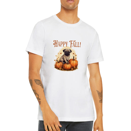Happy Fall! -- Premium Unisex Crewneck Pug T-shirt
