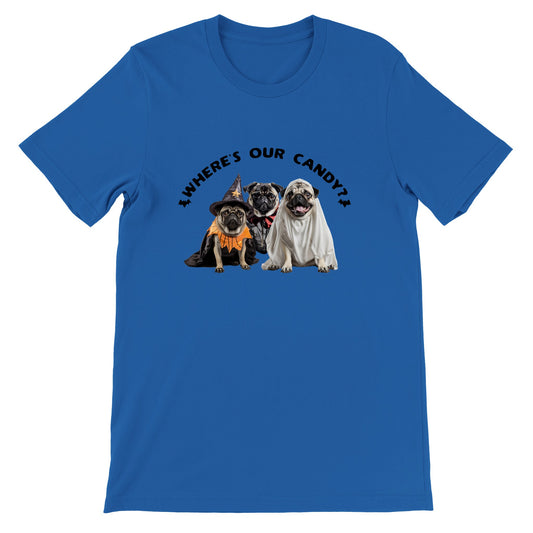 Where's our candy? -- Premium Unisex Crewneck Halloween Pug T-shirt