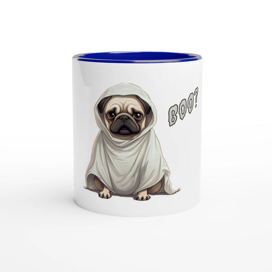Boo? -- White 11oz Ceramic Halloween Pug Mug with Color Inside