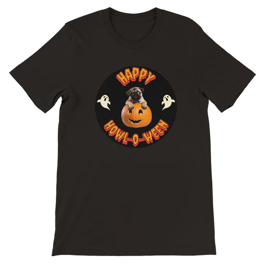 Happy Howl-o-ween -- Premium Unisex Pug Halloween Crewneck T-shirt