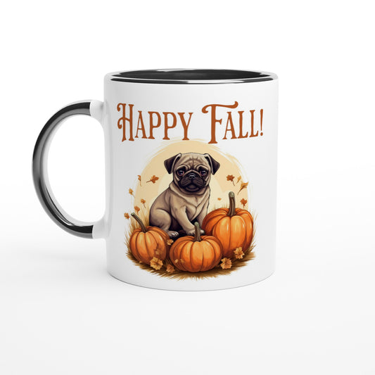 Happy Fall! -- White 11oz Ceramic Pug Mug with Color Inside