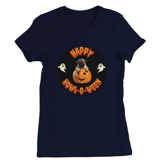 Happy Howl-o-ween -- Premium Women's Crewneck Pug Halloween T-shirt