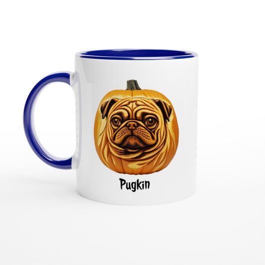 Pugkin -- White 11oz Ceramic Halloween Pug Mug with Color Inside