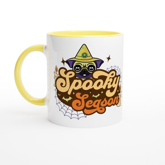 Spooky season -- White 11oz Ceramic Halloween Pug Mug with Color Inside