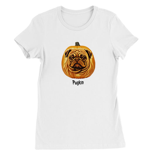 Pugkin -- Premium Women's Crewneck Halloween Pug T-shirt